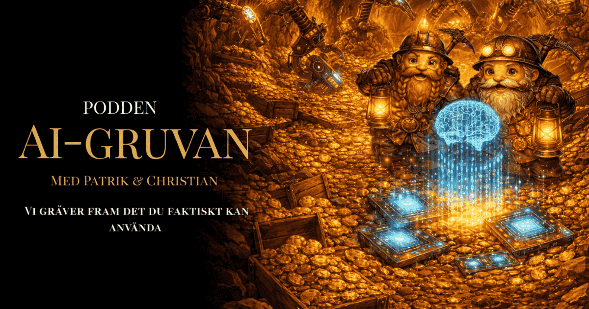 Skicka in din utmaning →Varje vecka skickar vi ut veckans guldkorn, ett konkret AI-tips du kan testa direkt. Ingen fluff, inga pitchar. Bara det bästa fyndet från veckans avsnitt.